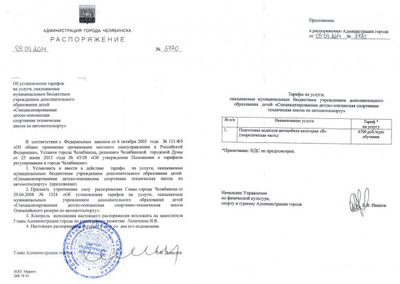 Распоряжение о платных образовательных услугах